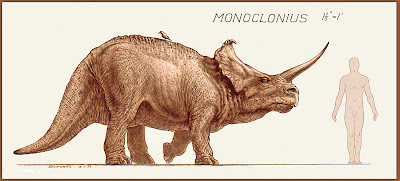 | Monoclonius drawing is from Jim's production TIMEGATE. The film was not finished. Drawn in graphite and reproduced as a brown-line print for presentation. |