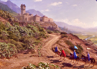 JD: By studying the way light refracts and reflects around inside glass-like shapes, then trying to reproduce that with paint. One of the painted crystals was actually transparent, so that I could let the boy on the horse show through it. I used thick glazes to create a slight distortion of the transmitted rear-projection image.