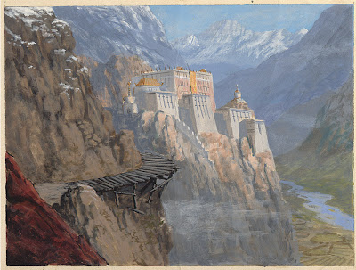 | One of the few surviving glass paintings that Jim still possesses - the highly detailed temple/monastery from the cheap Cannon Films (remember them?) 80's actioner NINJA III - THE DOMINATION |