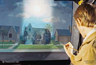 Q: I love the old style soft blends where such skill was evident that soft matte lines often ran straight across the mid frame, through trees, walls etc and yet the artists almost always blended the painting to plate perfectly – just how, I don’t know. A true joy to study such shots, which of course Warren Newcombe’s unit at MGM were geniuses at.