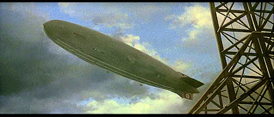 | The best trick shot in the movie... note how the sun 'wraps' around the tail of the zeppelin as it moves across frame. |