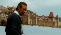 | More matte and glass work from DANGER DIABOLIK. The top left comprises of a glass painted element according to the DVD audio commentary, with the castle shots also being glass shots. They don't make 'em like this any more. |