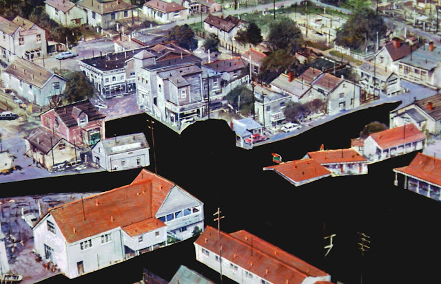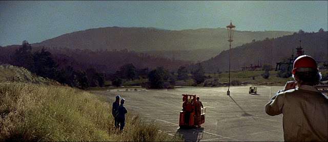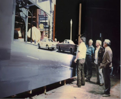 Whitlock's department at Universal consisted of a pretty small group; Matte Cinematographer Roswell Hoffman - who like Lawson had been in the department forever, going back to the James Whale horror pictures of the thirties with the legendary John P. Fulton. Ross, as he was known, was an extremely talented visual effects cameraman and optical man who worked right up to the Academy Award winning EARTHQUAKE (1974). Other staff in the department included Assistant Cameraman Mike Moramarco, who would work alongside Albert for many years to come. Millie Winebrenner and Nancy van Rensellaer were Rotoscope Artists - again long serving effects staffers whose careers went way back. Millie worked through to THE HINDENBURG (1975). Larry Shuler was Albert's Key Grip and would be responsible for building platforms and special rigs for the camera and was among other things a studio fireman and a fine practical joker. Larry passed away just a few months ago and his daughter was kind enough to send me some photos of some of the matte paintings he had up on his living room wall, with these marvellous images featuring at various points in this blog.