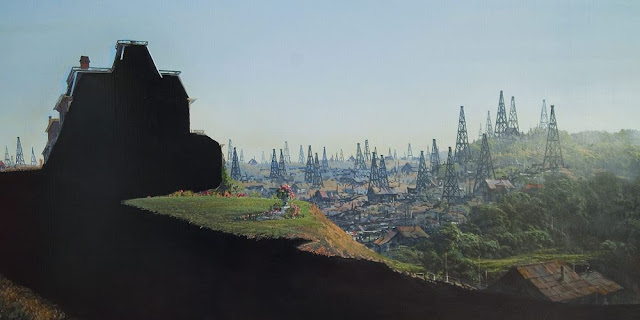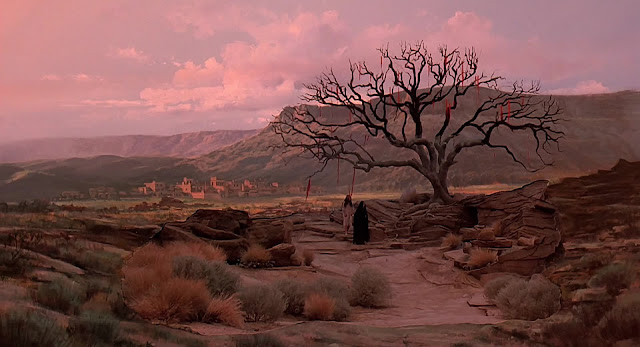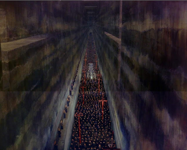 I love traditional matte art and old school ‘trick photography’. That will surely come as little surprise to my readers. I simply cannot get enough of it, no matter the genre, no matter the vintage, no matter the film, be it a timeless classic or a Poverty Row 'B' movie; no matter the artist or specialist responsible. The matte painter’s artform has no boundaries for me. I admire it for the purity, simplicity and honesty of the ‘trick’ - where the wool can be collectively pulled over our gullible eyes and have us believe that what we are seeing up there on the silver screen is fact, when as was so often the case, so many shots, scenes and set pieces were mere fiction, created by highly skilled artisans just by way of brushes, pigments, a smooth support and a steady camera.