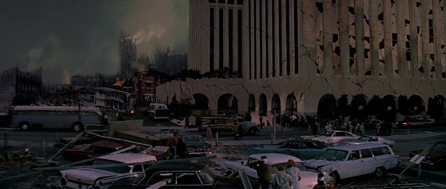 Although I included a few of Ken Marschall’s mattes in the same article I accidentally omitted a couple of superb mattes that Ken did for a film titled MY BOYFRIEND’S BACK (1993) - a film also known in some quarters as JOHNNY ZOMBIE apparently - which depict a heavenly ‘cathedral’ from two vantage points to wonderful effect. Beautifully painted in acrylic atop special high gloss black coated artists card measuring not much more than an A3 sized sheet of paper, as was Ken’s preferred modus operandi, and often painted on Ken's kitchen table at home, which must in itself be unique in the world of matte magic, the original negative composite was shot and put together by Ken’s longtime associate, visual effects cameraman Bruce Block at their small company
