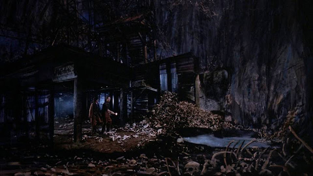 (**named after its inventor, German cinematographer Eugene Schufftan - sometimes billed as ‘Shuftan’ - the process was a superb, highly effective in camera method of combining multiple elements onto the original negative by clever use of a partially scraped away mirror and deep focus photography, all done right there on the set, the method was frequently applied throughout the 1920’s onward, especially in Europe and the UK, and even made it’s invisible mark in Disney’s wonderful DARBY O’GILL AND THE LITTLE PEOPLE (1959) and was ingeniously applied by Les Bowie to the famous closing shot of Hammer’s 1970 film WHEN DINOSAURS RULED THE EARTH ).