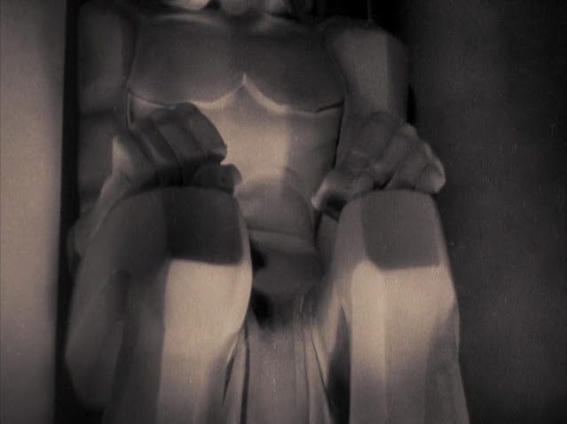 | No, you eyes aren't lying to you... I retrieved all of these high def frames from a, gulp, 'colourised' print. I strongly dislike the notion of 'colourisation' (damn you Ted Turner!) and avoid like the plague. However, the high fidelity specs of that print, as compared to awful DVD transfers, made for a better choice as far as obtaining very crisp effects shots. I went about desaturating almost all of the frames for this blog, back to their original monochrome, but have kept a few samples of colour shots for comparison. |